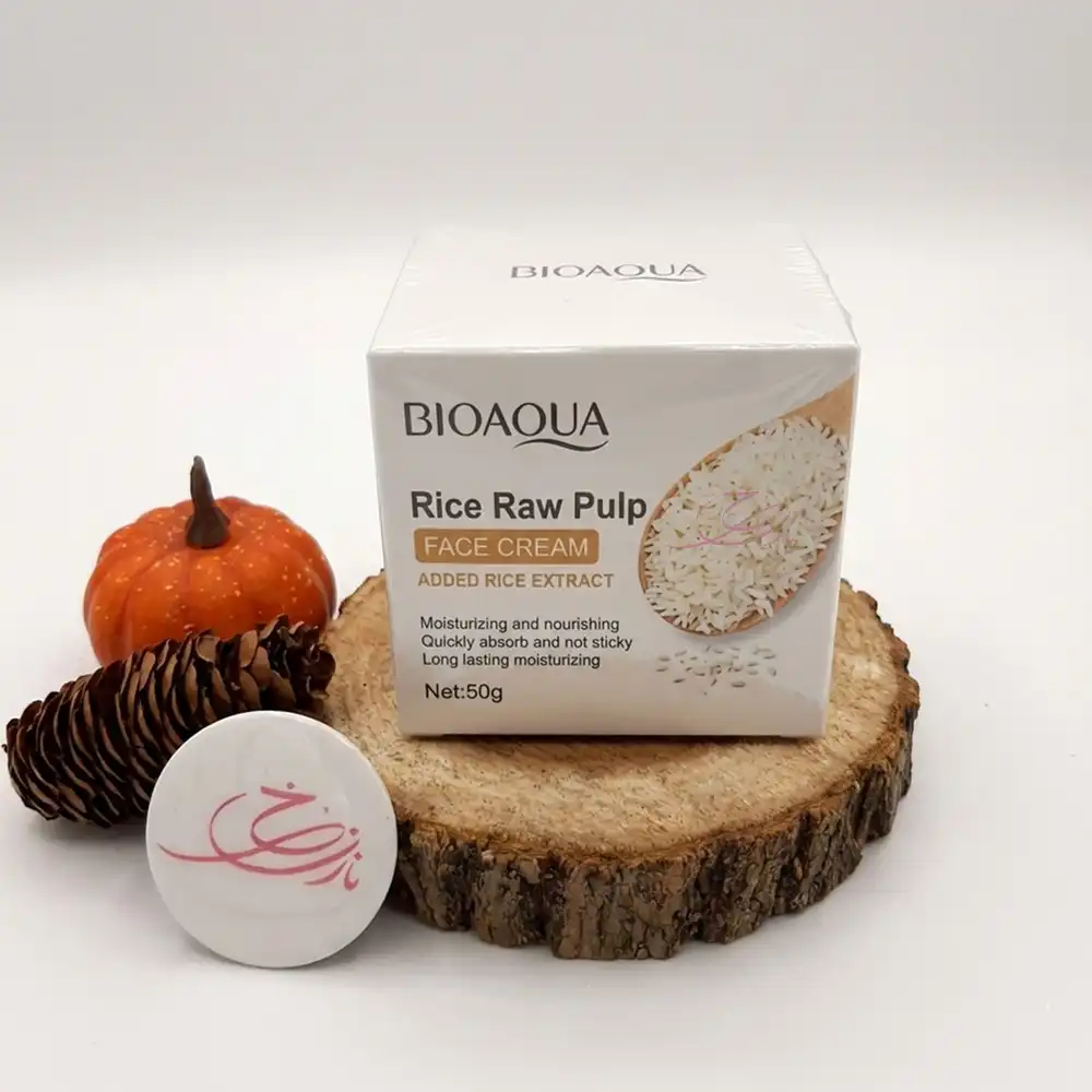 کرم صورت برنج بیوآکوا Bioaqua مدل Rice Raw Pulp مرطوب کننده و مغذی کاسه ای وزن 50 گرمی
