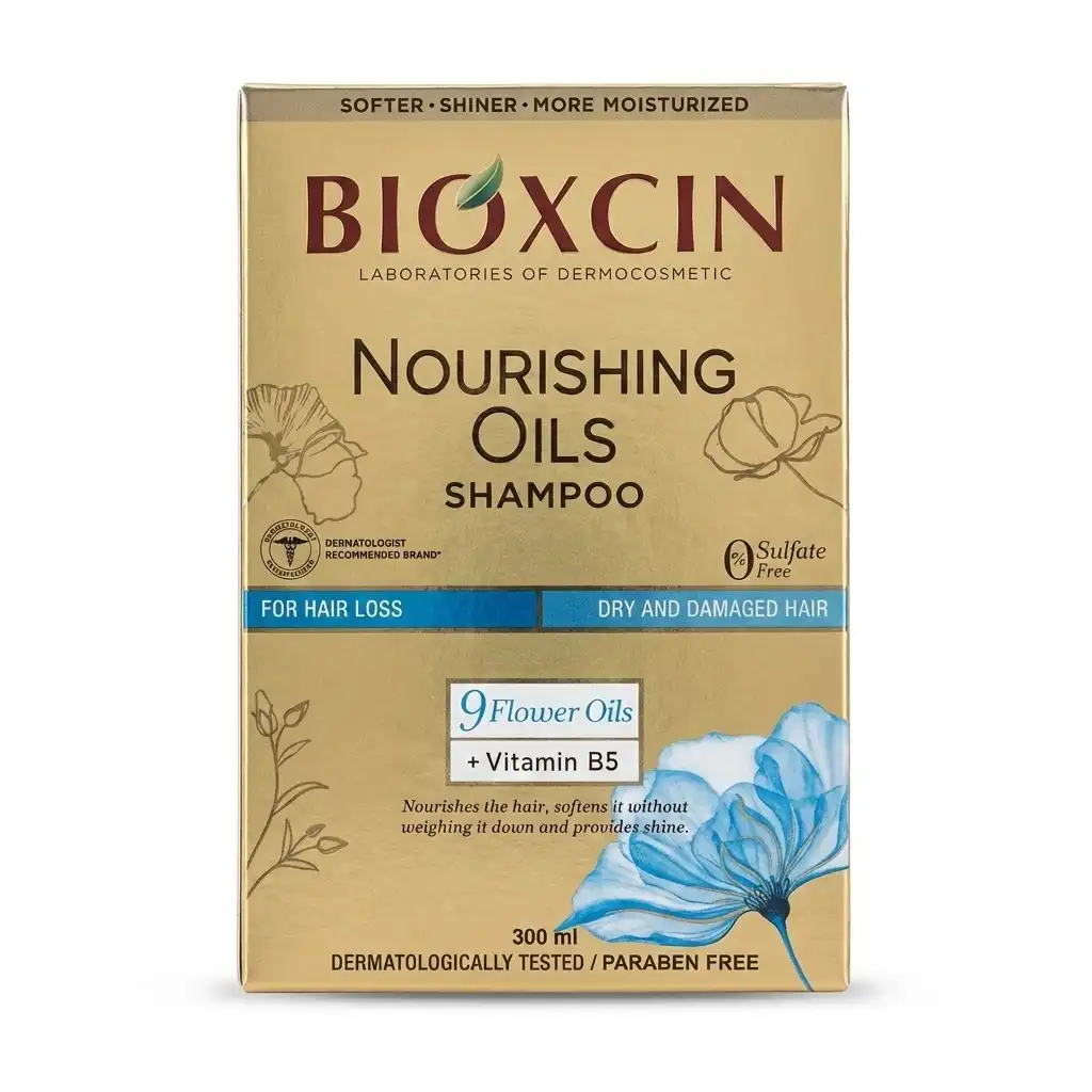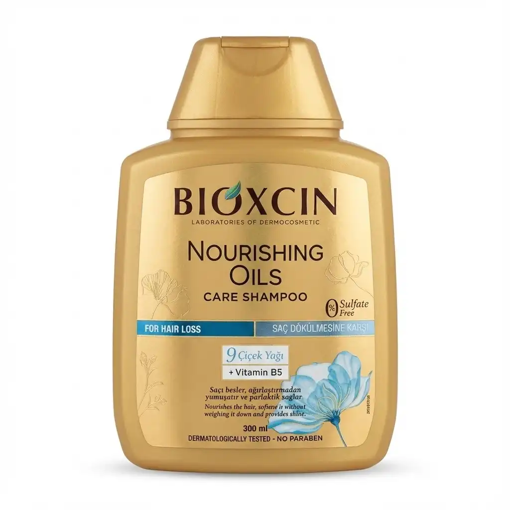 شامپو بیوکسین (Bioxcin) مدل Nourishing Oils Care Shampoo که با بستهبندی طلایی لوکس خود شناخته میشود، یک محصول درمانی فوقالعاده از لابراتوارهای درمو-کازمتیک ترکیه است. این محصول با شعار “FOR HAIR LOSS” (ضد ریزش)، به طور همزمان دو مشکل اساسی مو را هدف قرار میدهد: ریزش مو و خشکی/آسیبدیدگی ساقه.