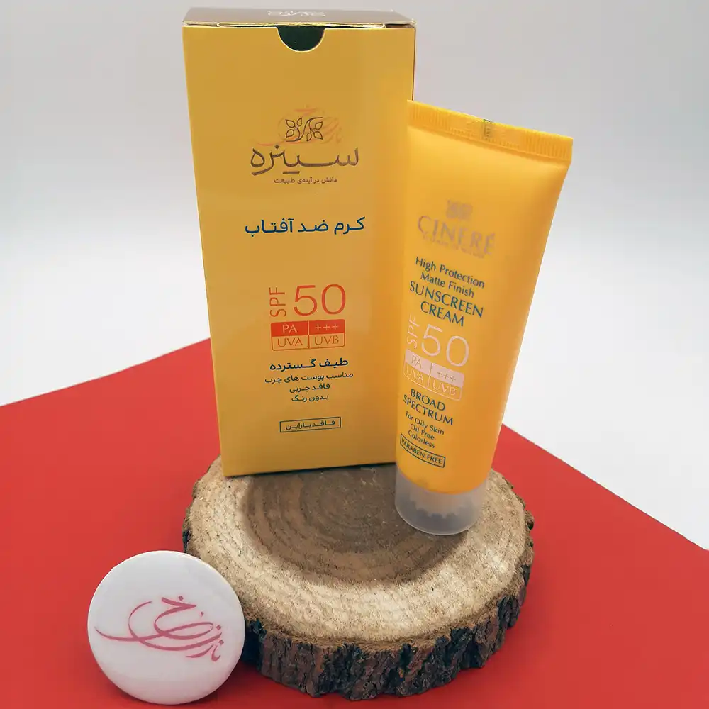 کرم ضدآفتاب SPF 50 بیرنگ سینره Cinere فاقد چربی و مات کننده مناسب پوست چرب و جوشدار حجم 50 میلی لیتر