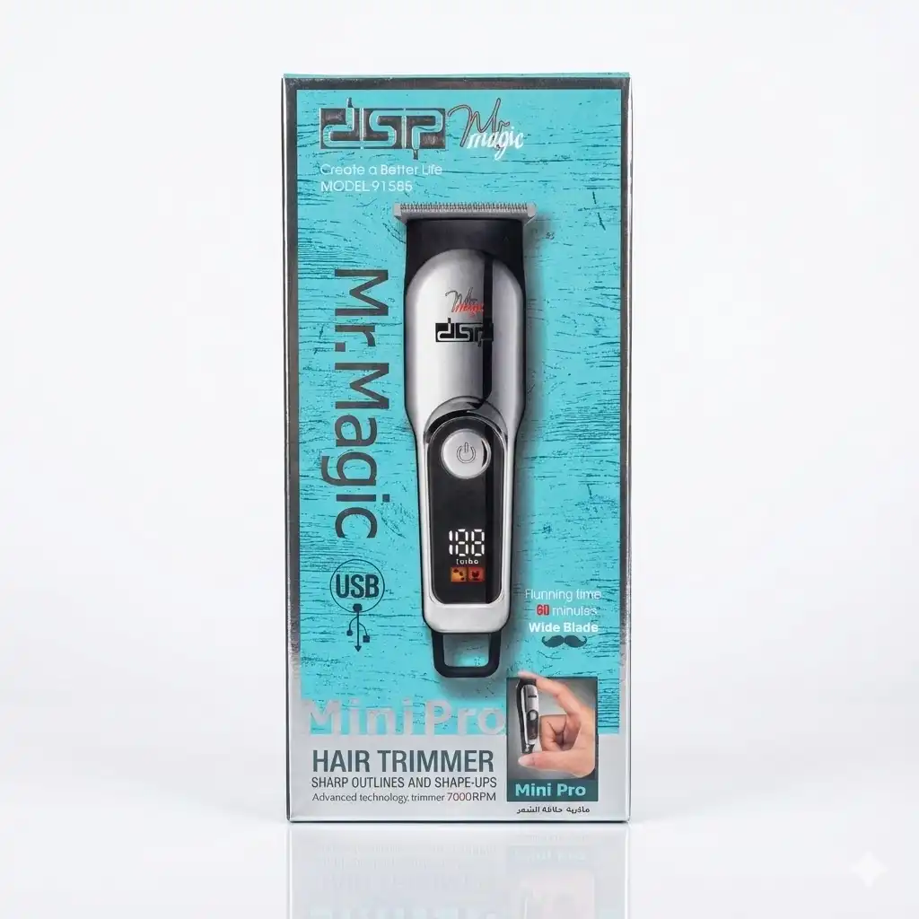 ماشین اصلاح دی اس پی (DSP) مدل 91585 که با نامهای “Mr. Magic” و “Mini Pro” روی بستهبندی معرفی شده است، یک شاهکار مهندسی در ابعاد جیبی است. این دستگاه با وجود ابعاد بسیار کوچک (Mini Size) که در کف دست جا میشود، قدرتی همتراز با ماشینهای اصلاح بزرگ دارد و برای کسانی که زیاد سفر میکنند یا به دنبال یک خطزن جمعوجور و لوکس هستند، ایدهآل است.
