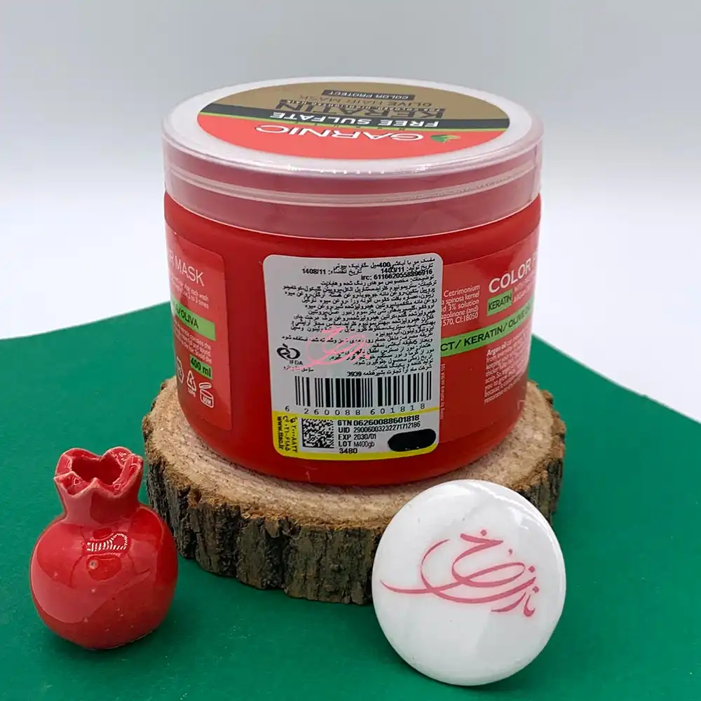 ماسک موی با آبکشی کراتینه گارنیک GARNIC قرمز بدون سولفات، محافظت از رنگ و حاوی روغن زیتون 400 میلی لیتر
