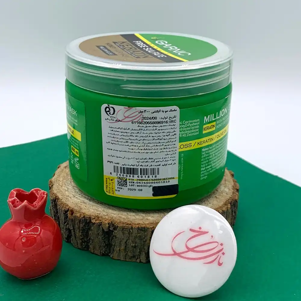 ماسک موی با آبکشی کراتینه گارنیک GARNIC سبز حاوی عسل طبیعی، روغن زیتون و بدون سولفات حجم 400 میلی لیتری